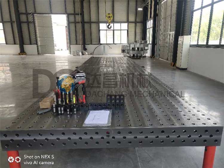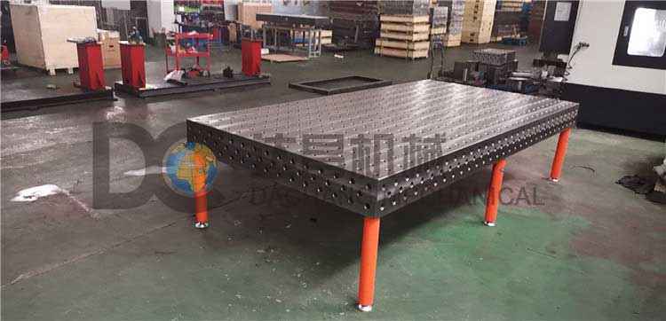 工作臺的五個工作面都有100x100 mm(D28系列)或50x50mm(D16系列)的帶有網(wǎng)格標注的孔。其五個面的平面、平行、垂直公差精度以及孔與孔的位置精度都是非常高的,保證在臺面上的定位和臺面與其它模塊之間的組合都具有足夠的使用精度要求?;A(chǔ)臺面的尺寸從1000x1000mm到4000x2000mm可以任意選擇,非標尺寸可以定做。