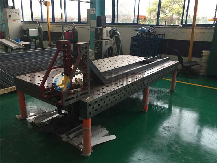 ①基礎件:如方形、矩形、圓形基礎板等,用作夾具工裝臺. 工作臺的五個工作面都有100mm×100mm(D28系列)或50mm×50mm(D16系列)的帶有網格標注的孔。其五個面的平面、平行、垂直公差精度以及孔與孔的位置精度都是非常高的,保證在臺面上的定位和臺面與其它模塊之間的組合都具有足夠的使用精度要求。基礎臺面的尺寸從1000mm×1000mm到4000mm×2000mm可以任意選擇,非標尺寸可以訂做。如果臺面與臺面組合后的精度要求很高,則可以使用導軌將它們連接起來。